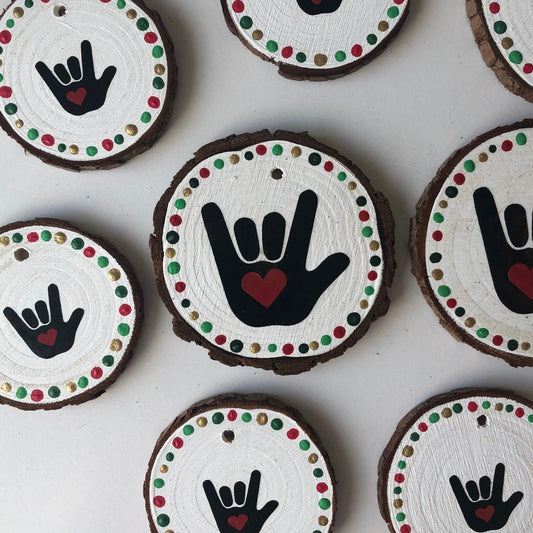 Sign Language I love you wood ornament