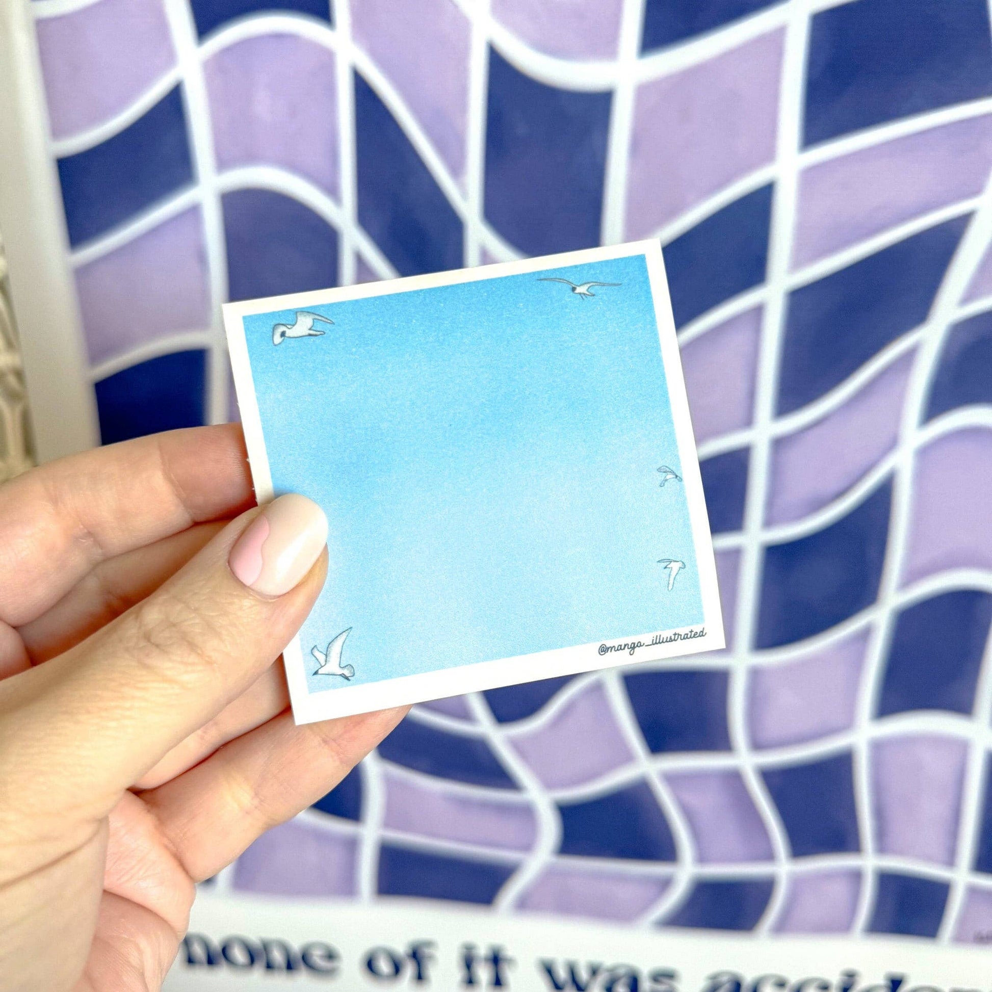 These sticky notes are the perfect blank space for quick notes and lists alike. Inspired by Taylor's 1989 TV album cover, this sticky note pad is reminiscent of a polaroid photo of a seaside sky with seagulls in the wind. Make sure to check out our Swiftie Stationery shop section for more must-have desk additions!