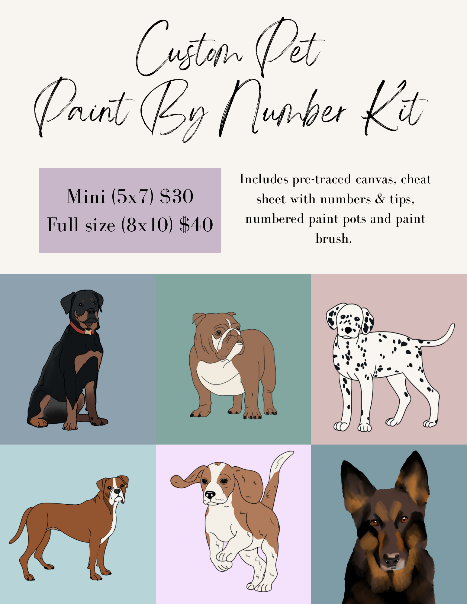 Become an artist with our special paint kits. Our brand new custom paint by number allows you to paint a beautiful picture of your pet from the comfort of your home.