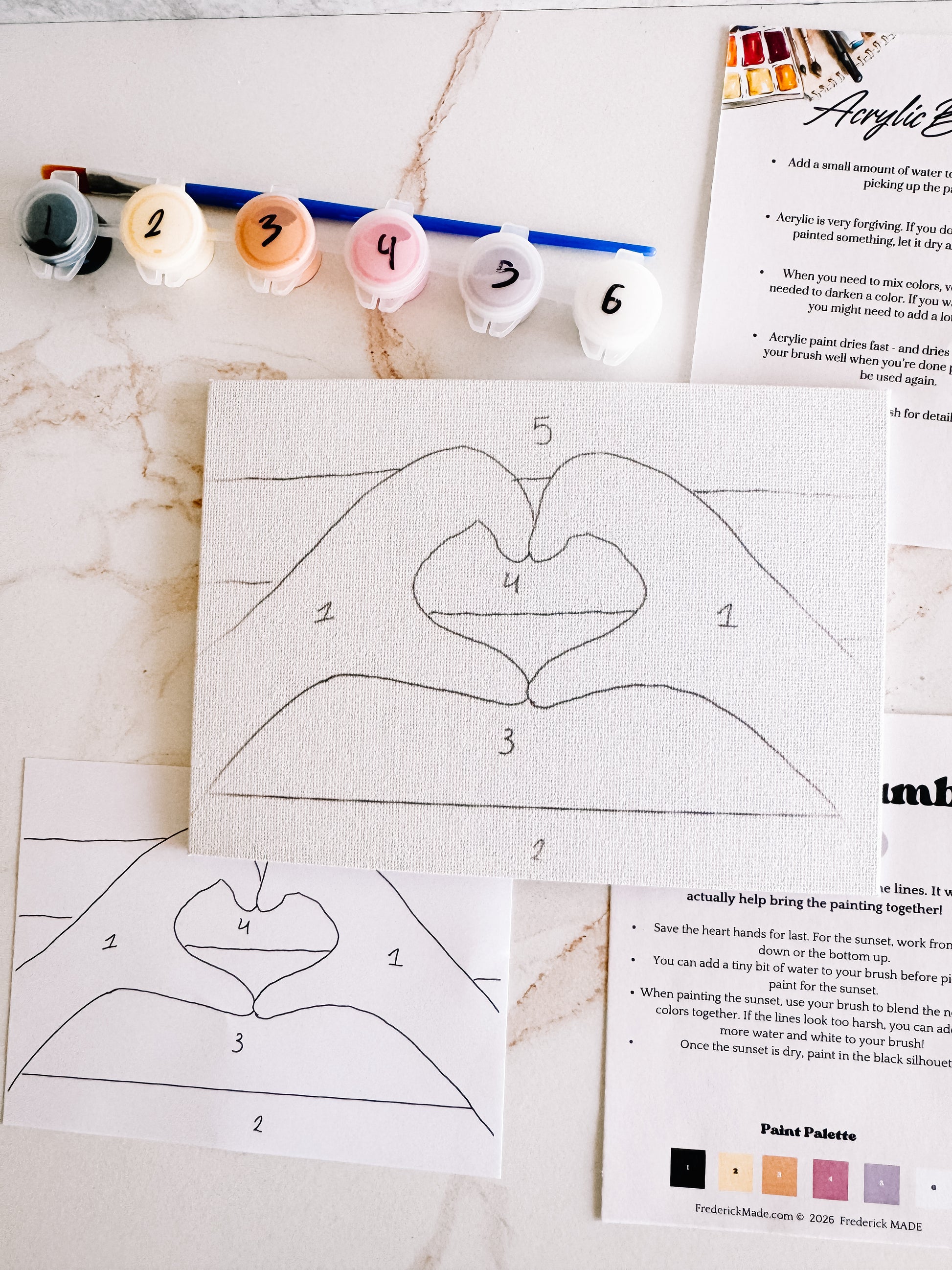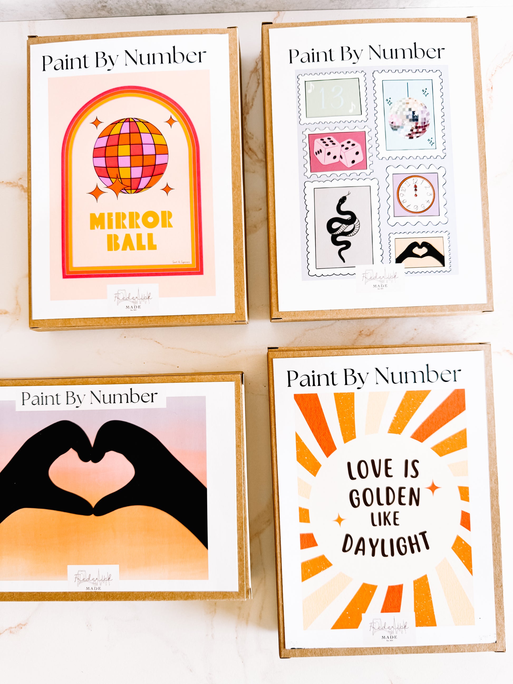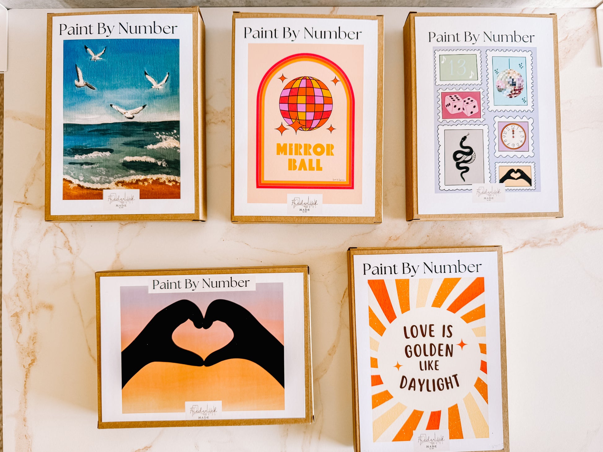 Each kit comes with a 5x7 pre-traced canvas, numbered paint pots and a paint brush. Fill in the corresponding numbers with paint or choose your own colors for a unique twist on one of these paintings.