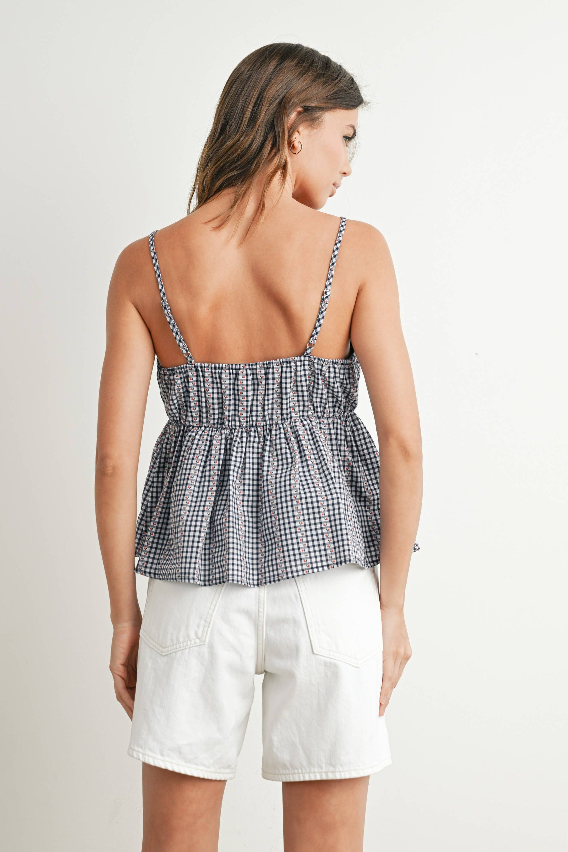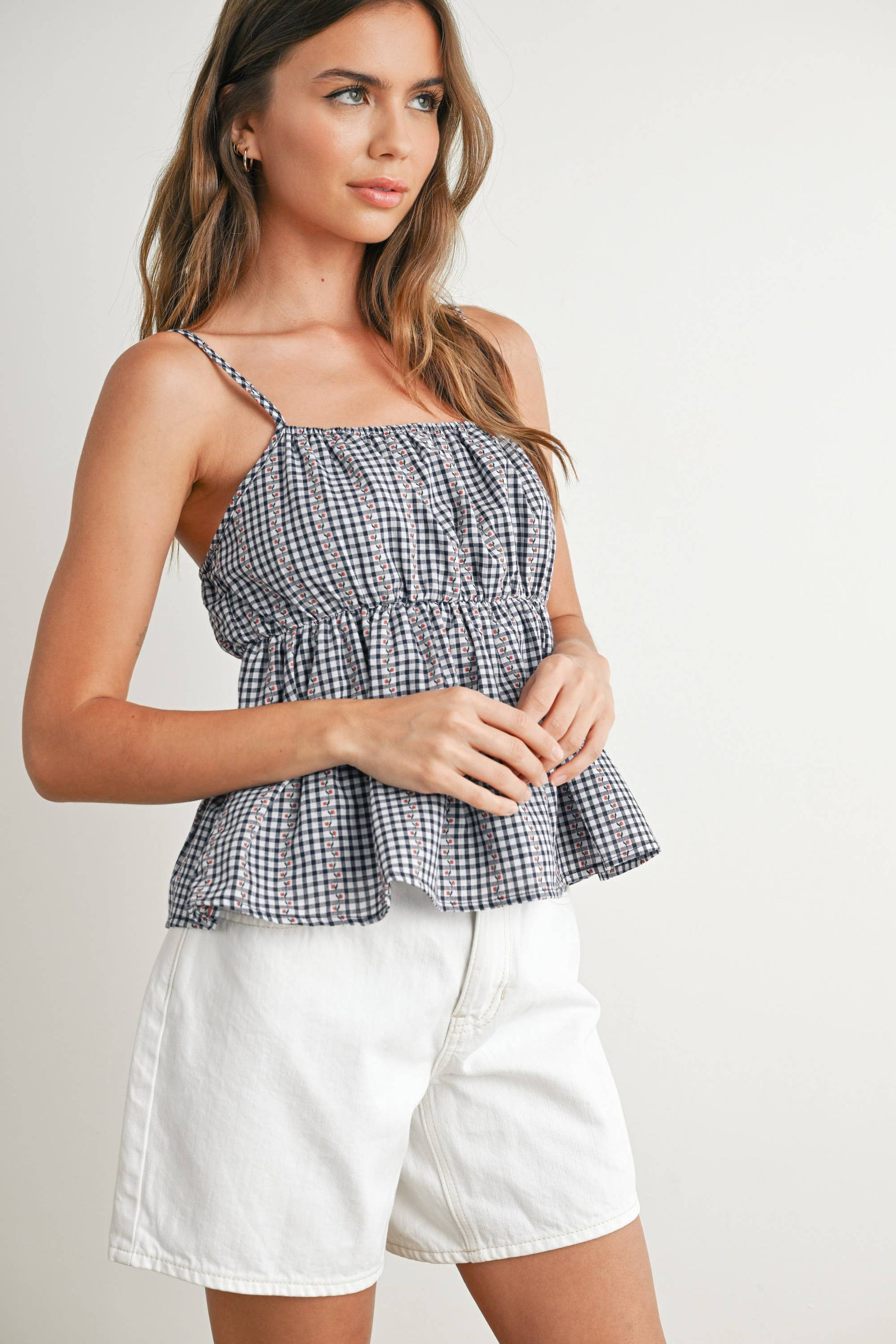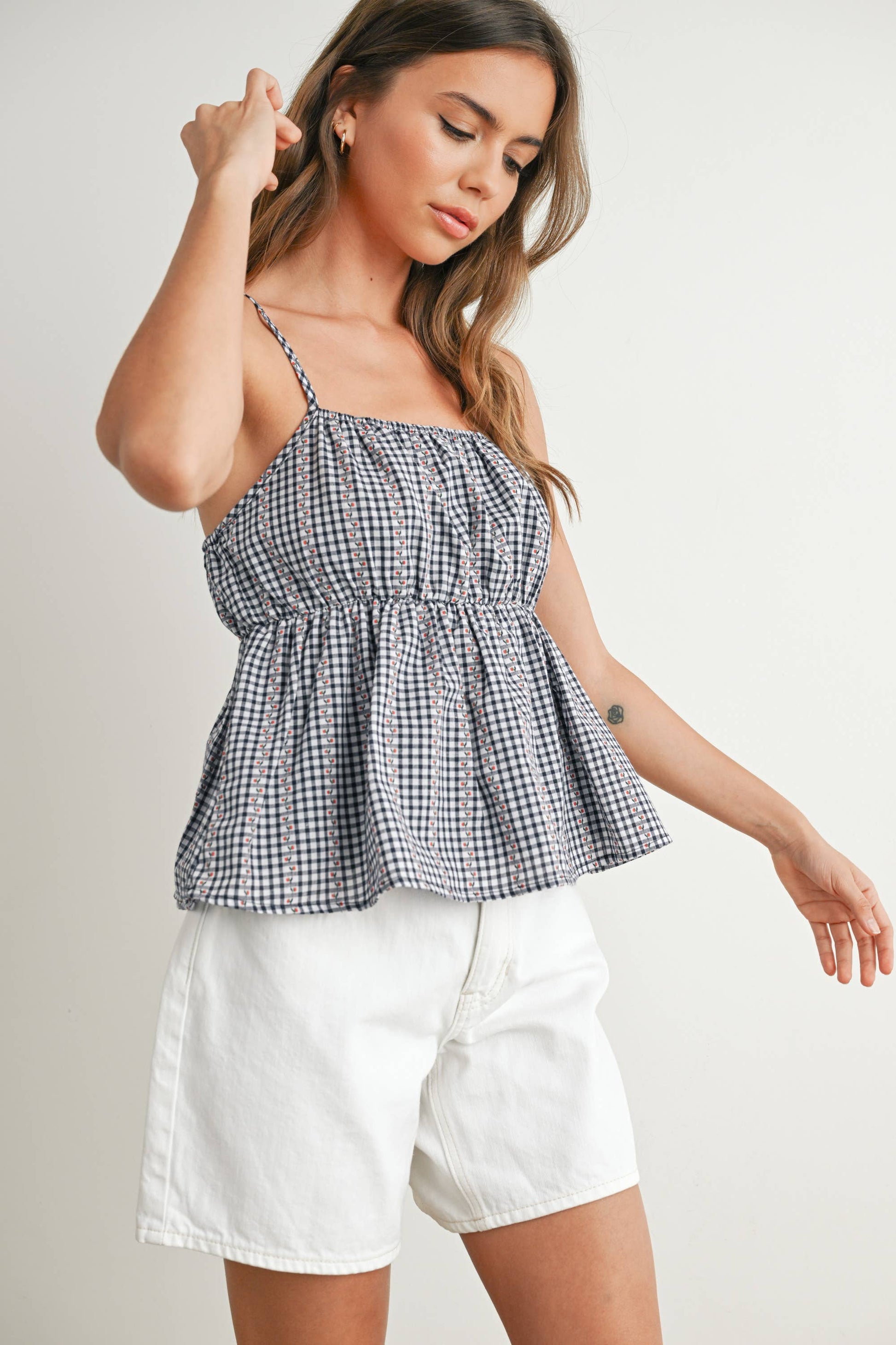 This Gingham Peplum Top features a classic checkered pattern, offering a fresh and stylish look. The peplum design accentuates the waist, creating a flattering silhouette, while the lightweight fabric ensures comfort and breathability. Perfect for both casual and semi-formal occasions, this versatile top can be paired with jeans or skirts for a chic, effortless outfit.
