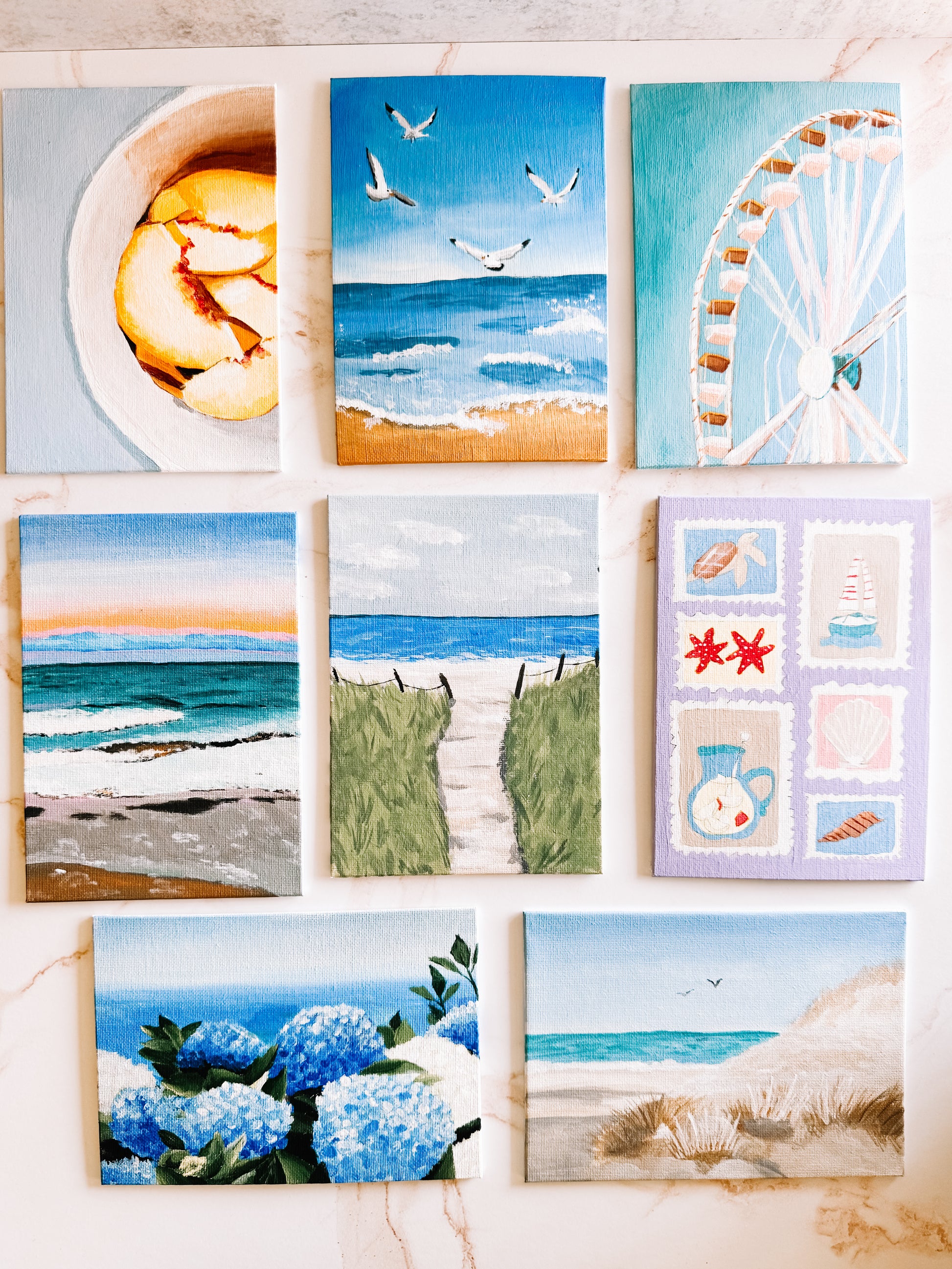 Each kit comes with a 5x7 pre-traced canvas, numbered paint pots and a paint brush. Fill in the corresponding numbers with paint or choose your own colors for a unique twist on one of these paintings.