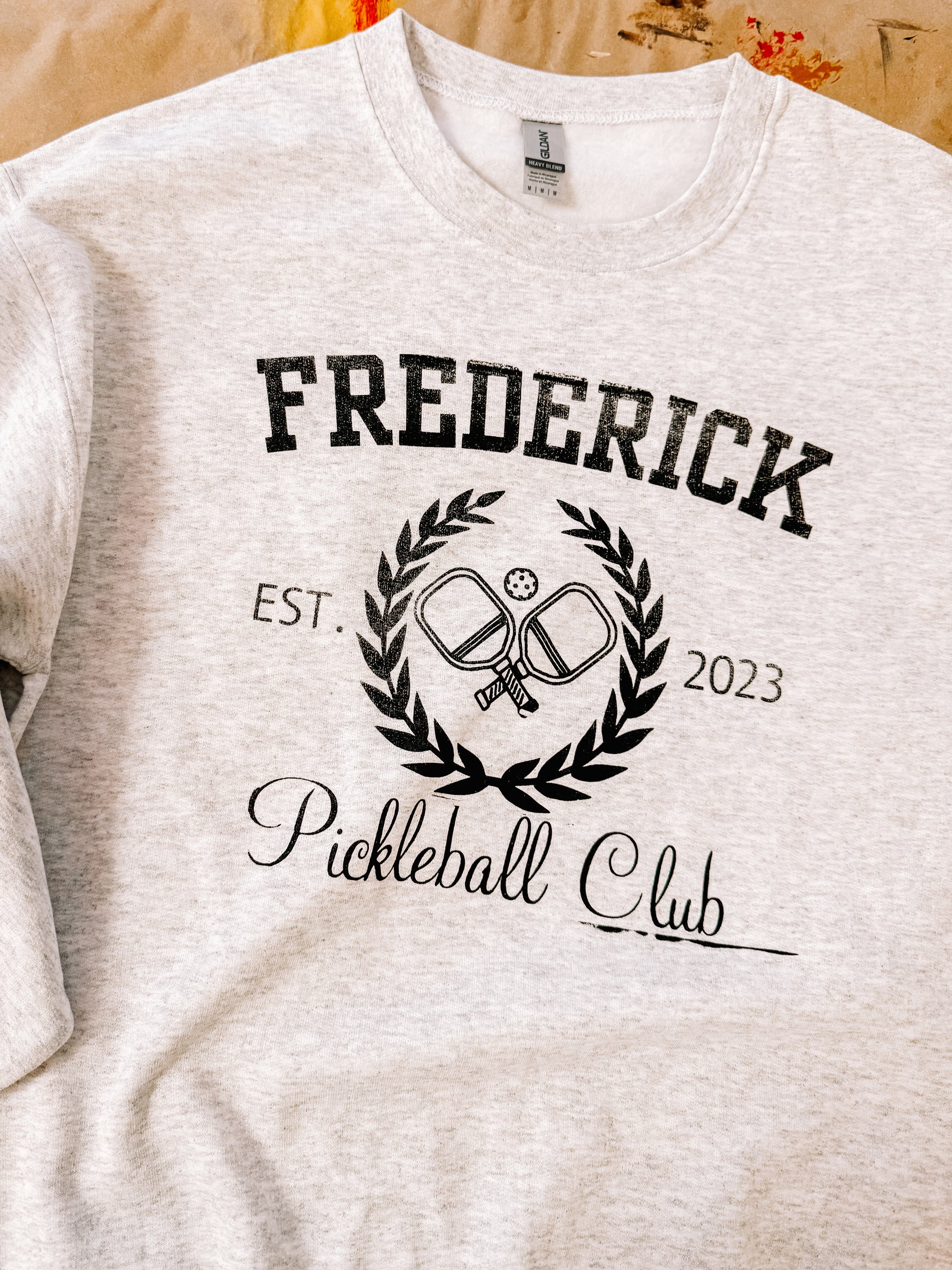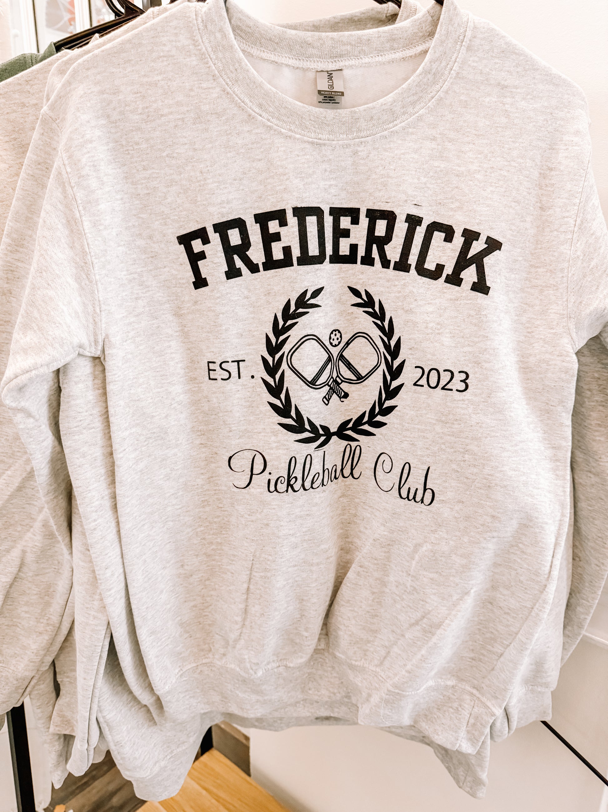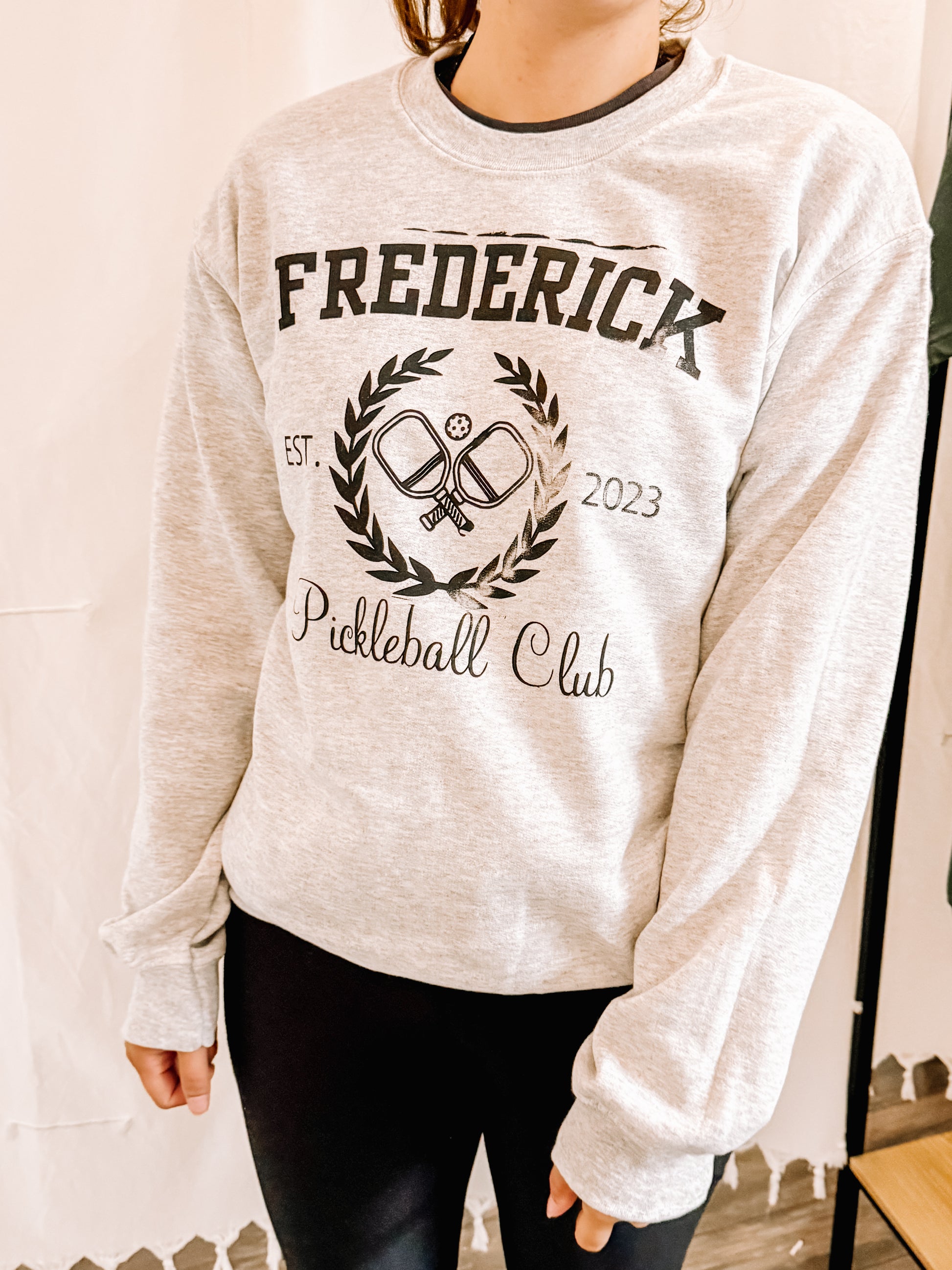 Designed and printed at Frederick MADE, cozy up this fall with our new pickleball sweatshirt. Vintage-Inspired design, adult unisex sizes
