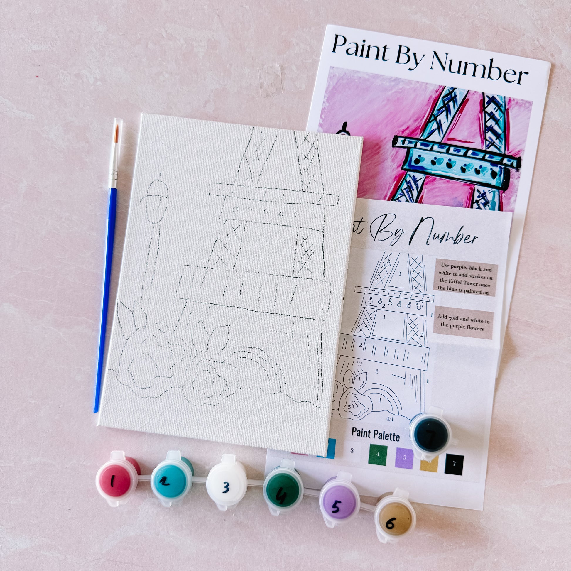 Each kit comes with a 5x7 pre-traced canvas, numbered paint pots and a paint brush. Fill in the corresponding numbers with paint or choose your own colors for a unique twist on one of these paintings.