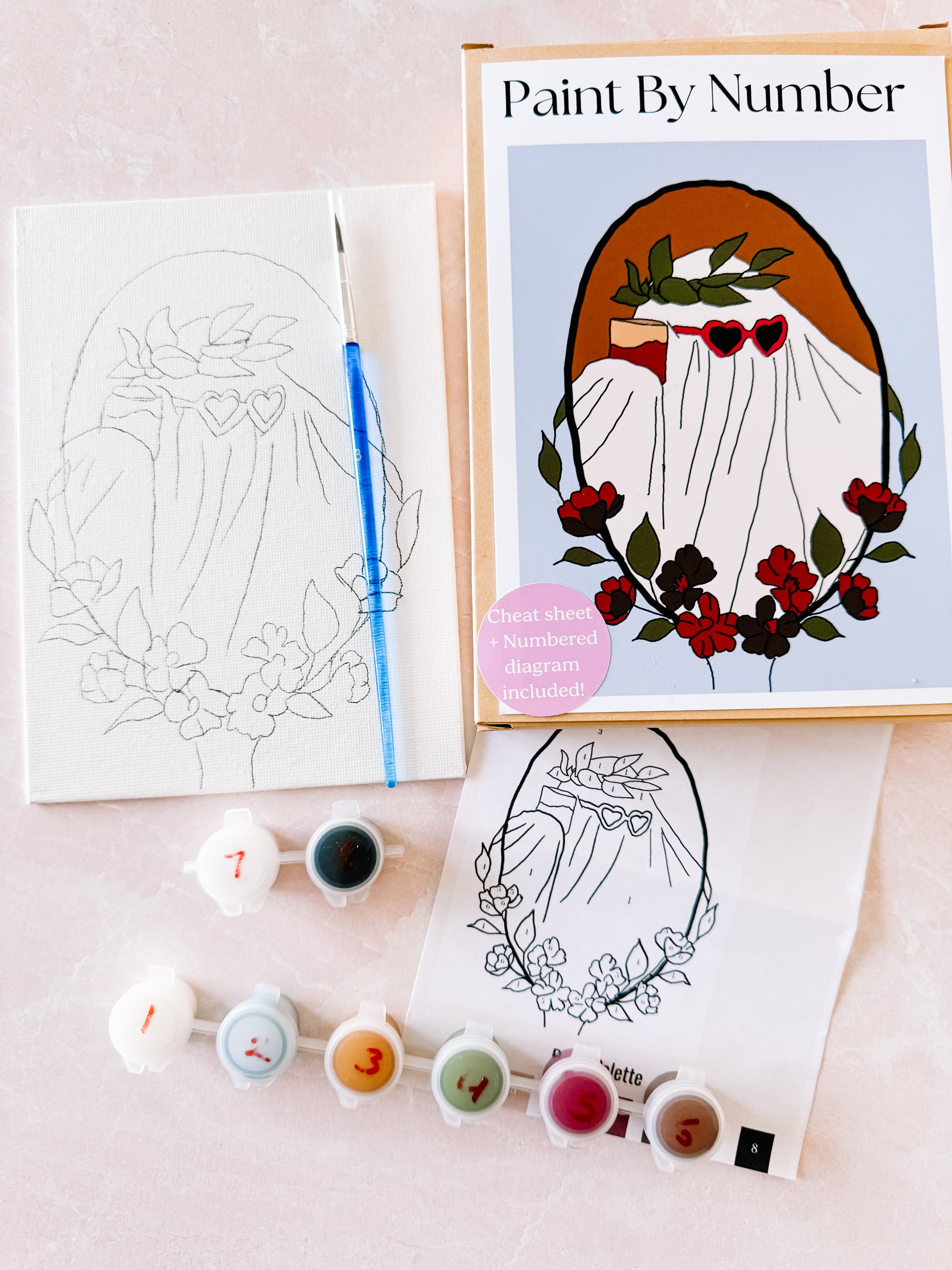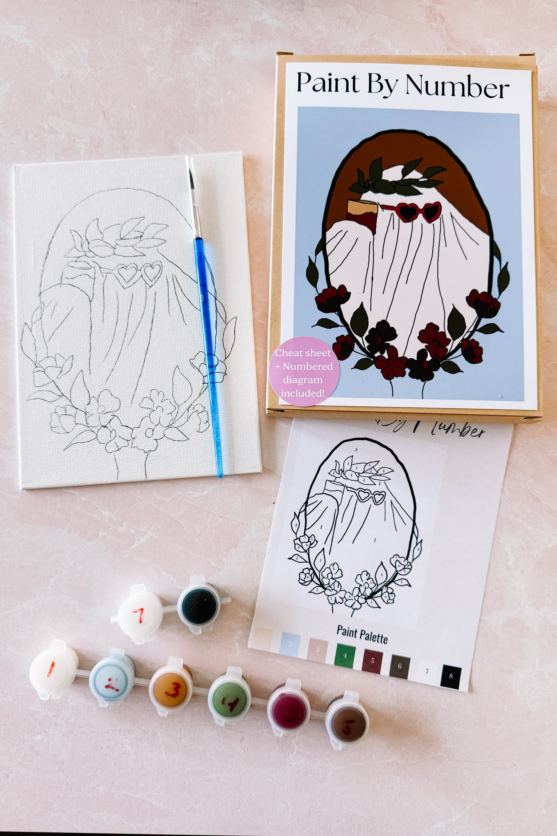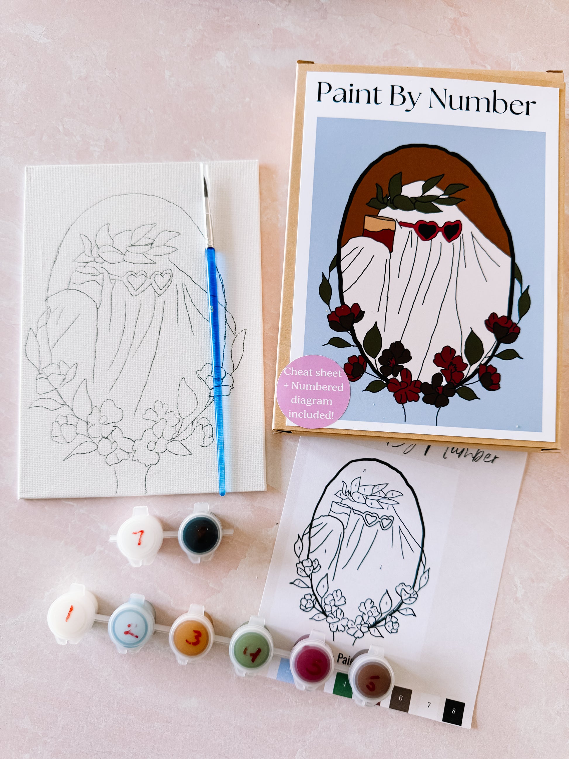 Each kit comes with a 5x7 pre-traced canvas, numbered paint pots and a paint brush. Fill in the corresponding numbers with paint or choose your own colors for a unique twist on one of these paintings.