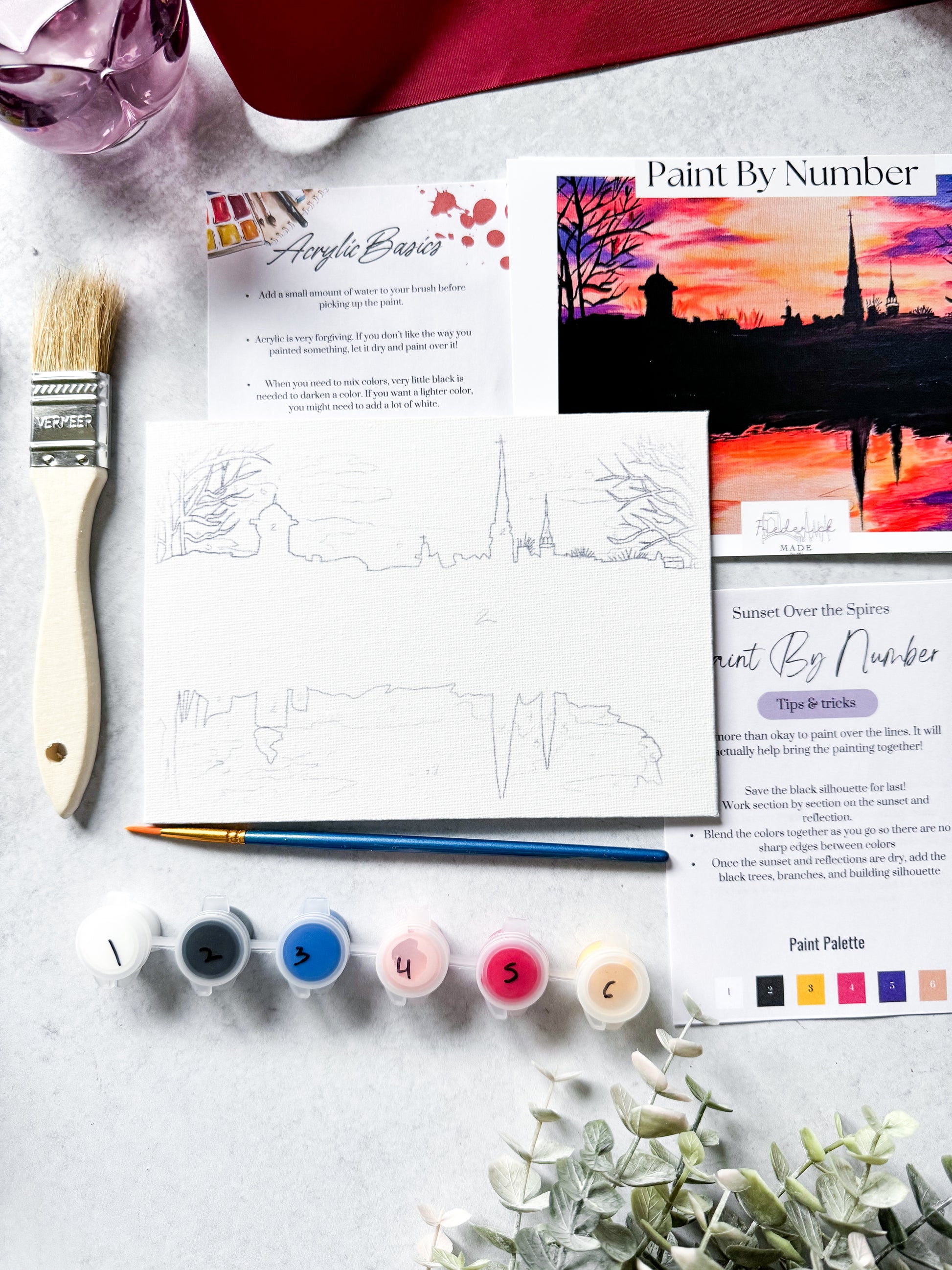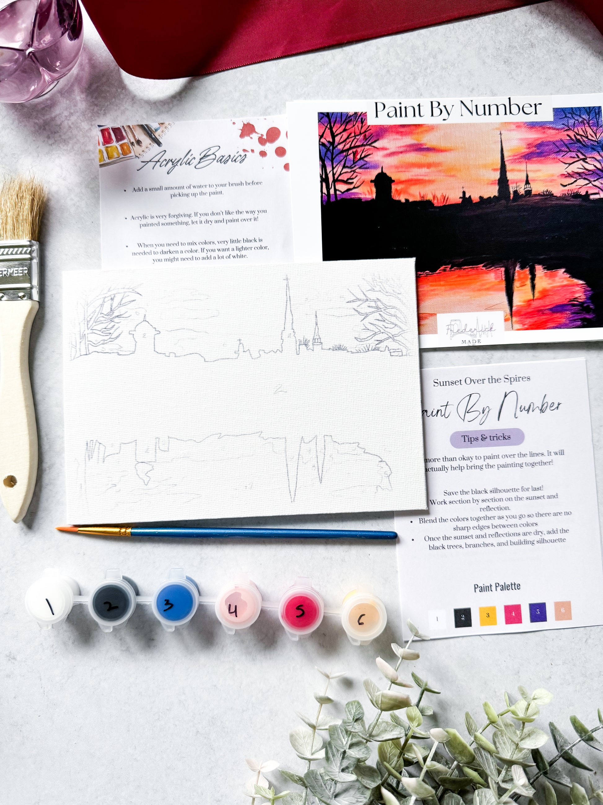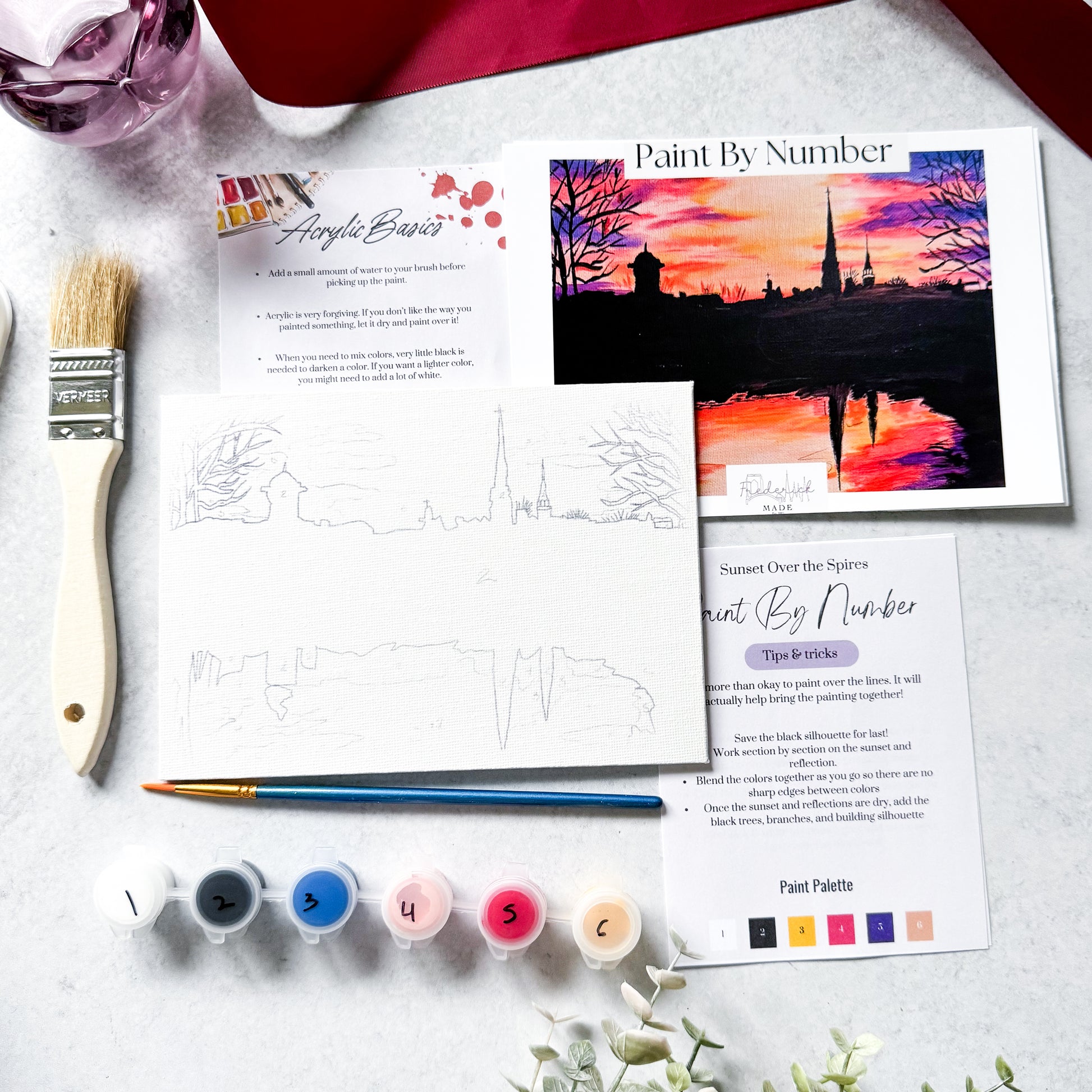 Each kit comes with a 5x7 pre-traced canvas, numbered paint pots and a paint brush. Fill in the corresponding numbers with paint or choose your own colors for a unique twist on one of these paintings.