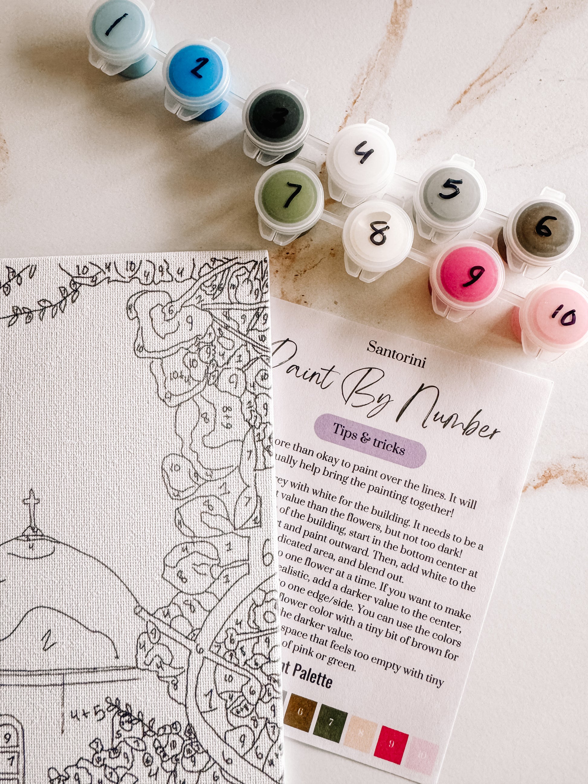 Each kit comes with a 5x7 pre-traced canvas, numbered paint pots and a paint brush. Fill in the corresponding numbers with paint or choose your own colors for a unique twist on one of these paintings.