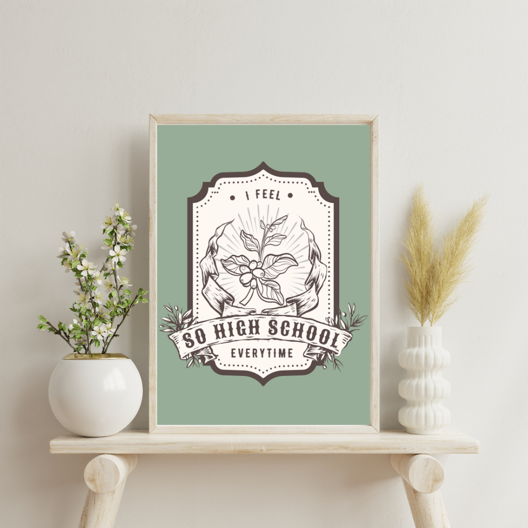 Elevate your home decor with our original Art Prints. Available in two sizes, 5x7 and 8x10 inches, our in-house printing ensures high quality using premium art paper and ink. Add a touch of sophistication to any room with this beautifully crafted art piece. The So High School Print is part of The Swiftie Collection.