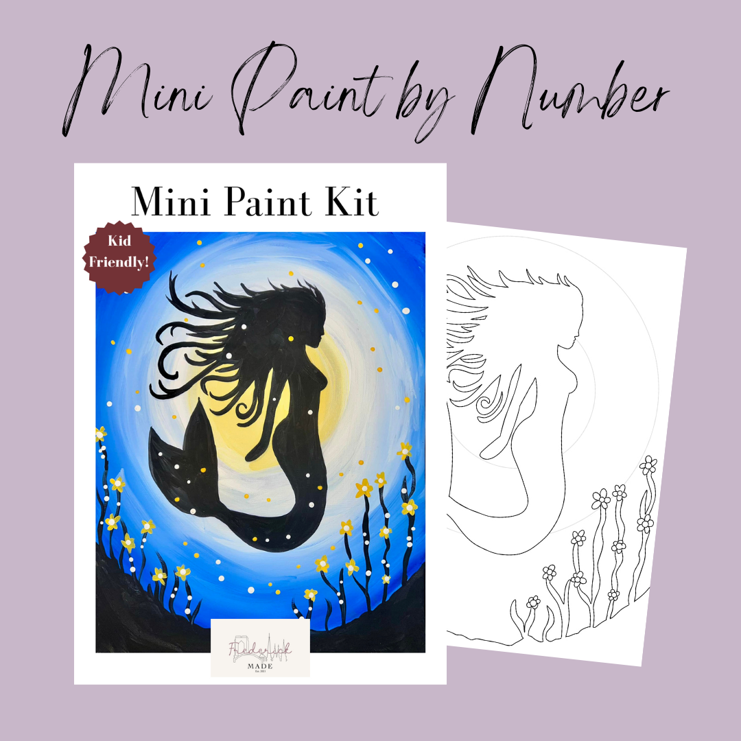 New kids paint kits are here! These miniature paint kits include a pre-traced canvas, paint and brush. Each kit comes will a small instruction card that tells you the basics of painting.