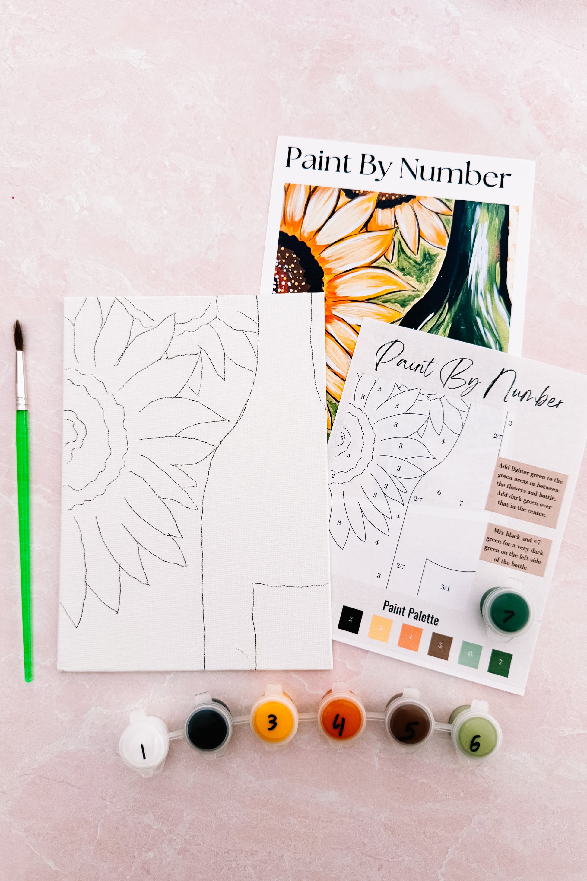 Each kit comes with a 5x7 pre-traced canvas, numbered paint pots and a paint brush. Fill in the corresponding numbers with paint or choose your own colors for a unique twist on one of these paintings.